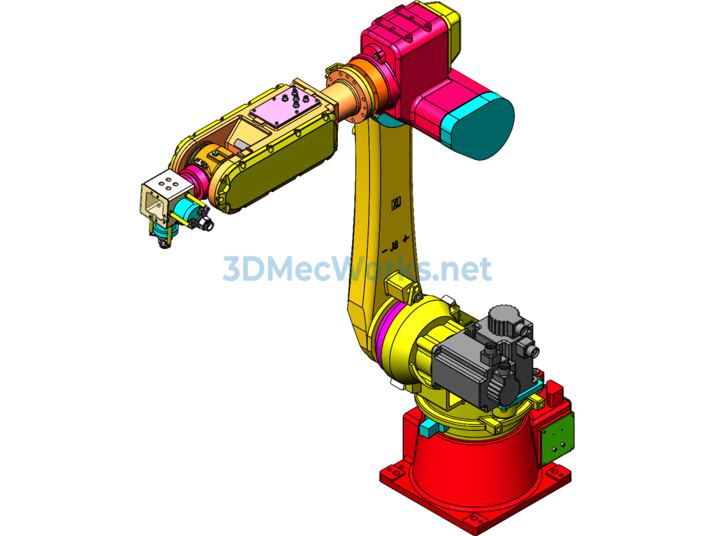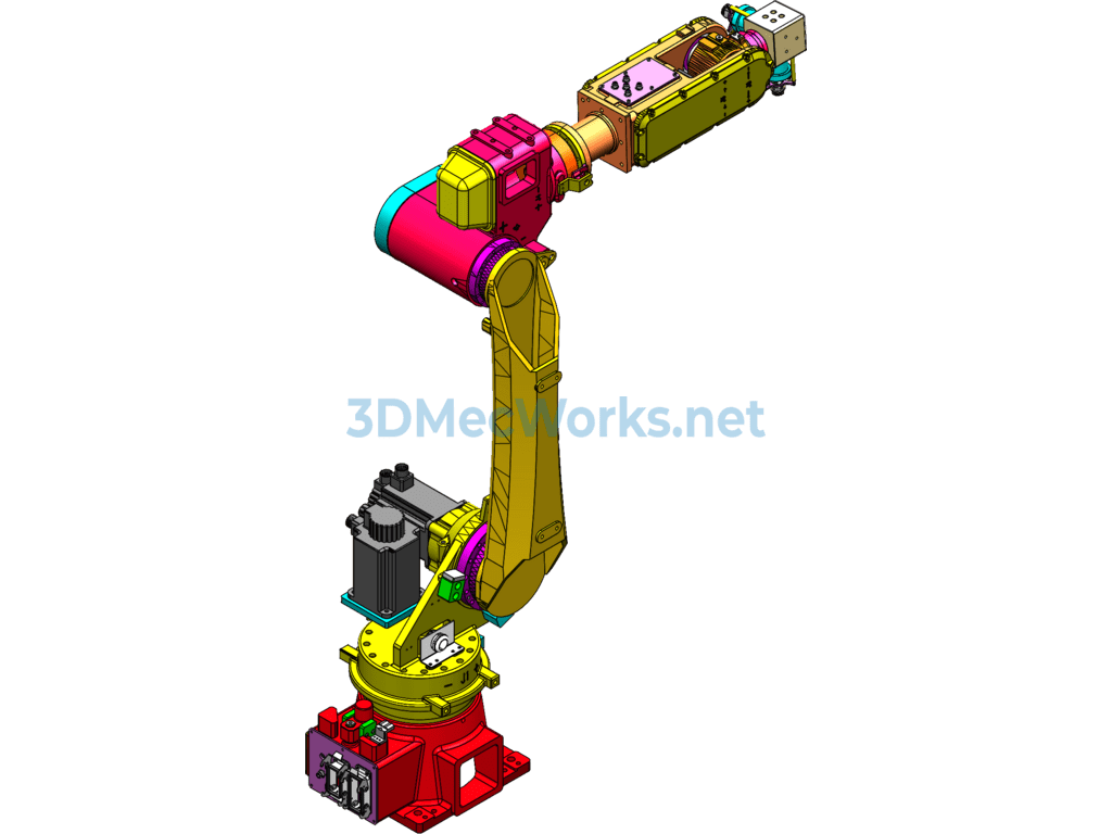 Aifute (ER20-C10) six-axis industrial robot, modeled in SolidWorks 2013, with parameters and editable features. This comprehensive drawing set includes the 6-joint robot body, harmonic reducer, RV reducer, Delta servo motor, pulleys, and mechanical gripper. The joint robot, also known as the articulated arm robot or articulated mechanical arm, is one of the most common forms of industrial robots in today’s industrial fields. It is suitable for mechanical automation tasks in various industrial fields, such as automatic assembly, painting, handling, welding, and more. Feel free to download and learn if interested.