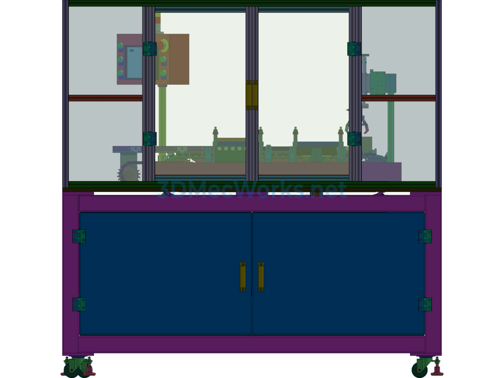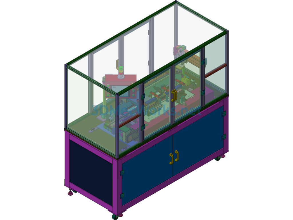 This equipment mechanism is designed with SW2016 and includes editable part features. Firstly, it uses a touch screen and PLC control. It automatically displays fault detection, is simple to operate, and easy to maintain. It completes punching, shifting, feeding, and riveting in one go. The upper and lower buckle hoppers adopt a slot-in design that is vibration-free, noiseless, smooth in buckle flow, and not easily worn. The upper and lower buckles have an added air-blow function, enabling more stable delivery of the buttons. Infrared positioning is used for more accurate riveting. It provides single-shot mode and continuous mode: the speed is adjustable, greatly improving production efficiency. Suitable for skilled operators. After riveting, the buttons are neat, firm, aesthetically pleasing, and do not deform. It includes universally editable STP and UG formats.