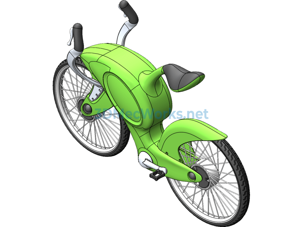 Bicycle design model, includes detailed design parameters in SolidWorks, with STEP and X-T universal format files.