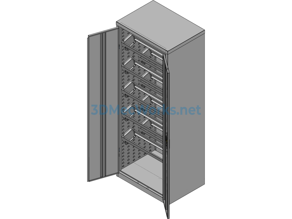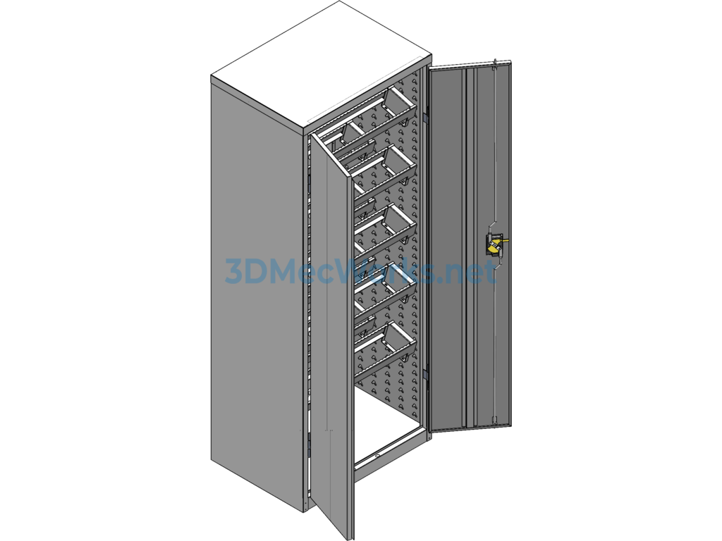 Tool cabinets are suitable for the fixed-position management of tools, cutters, and parts on the production site, enabling truly timely, accurate, efficient, and low-consumption access to your items. This model features a realistic design and a reasonably structured mechanism. The drawings and components are complete and are worth referencing for learning. Welcome to download.