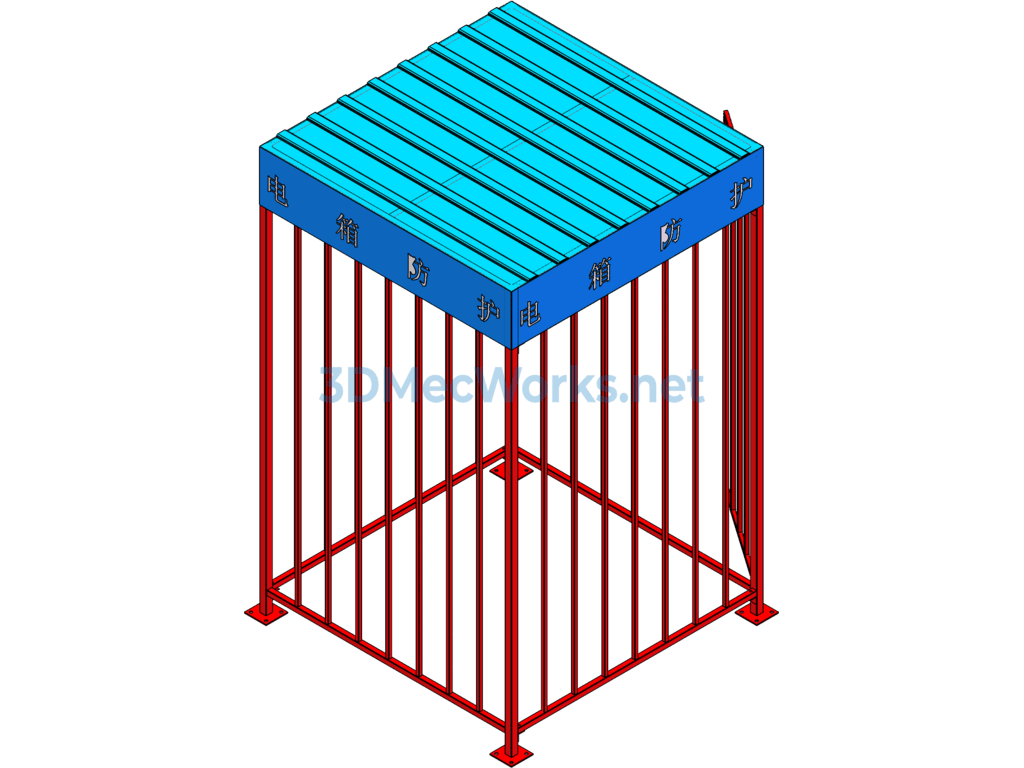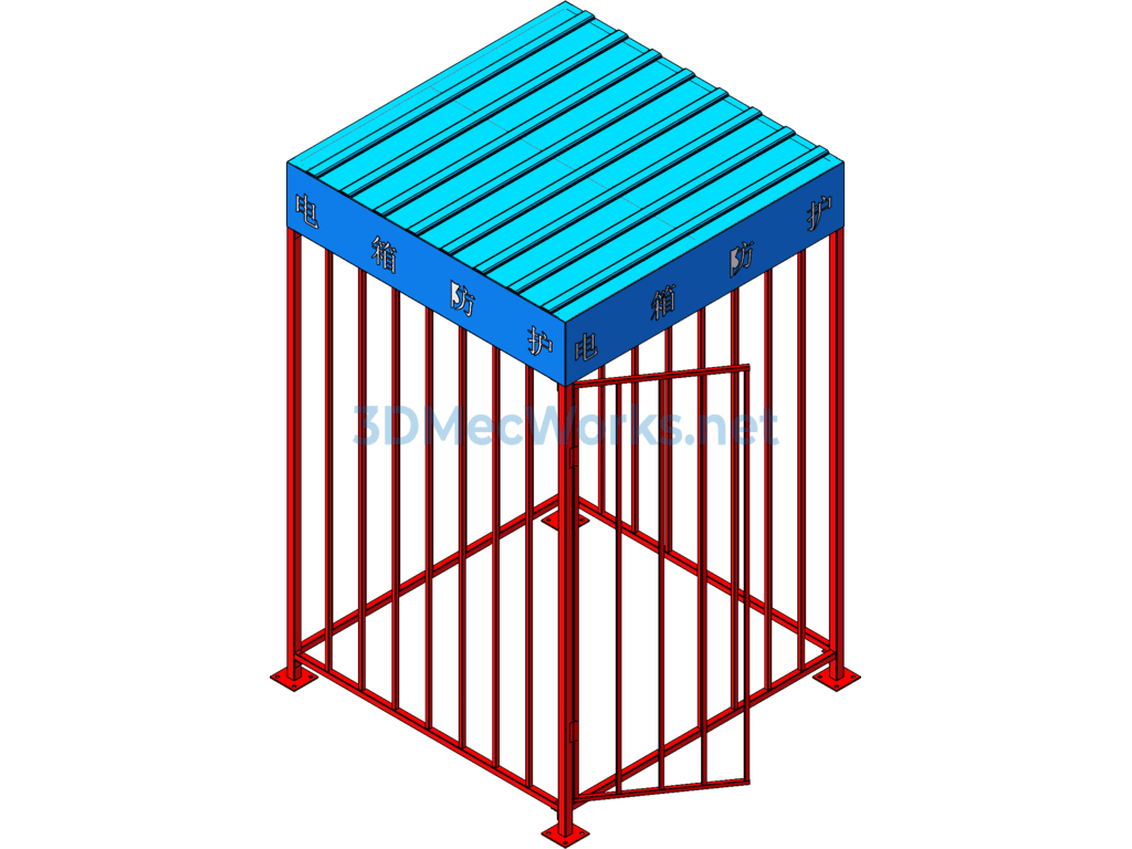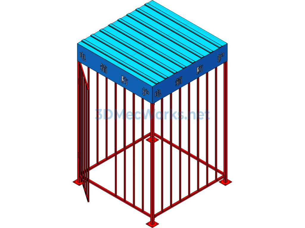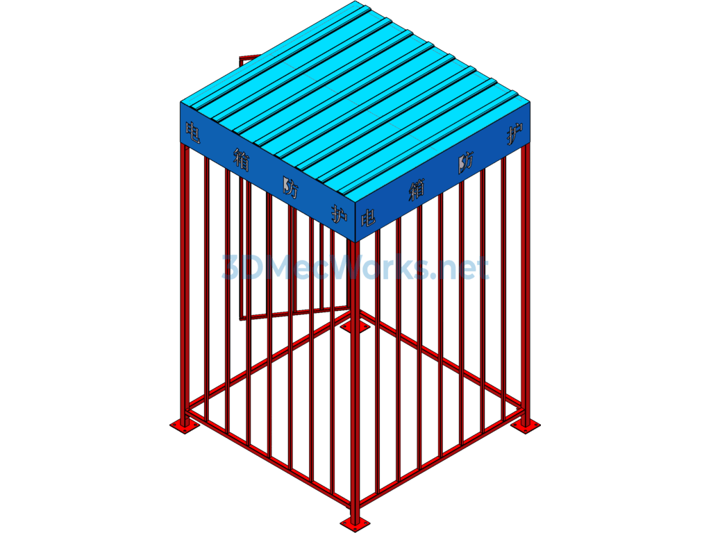 The electrical box protective shelter is a device designed to safeguard the distribution box. It is custom-made according to the dimensions of the electrical box provided by the customer. The protective shelter is equipped with a special lock to prevent unauthorized personnel from opening the electrical box and causing accidents. This model has columns made of 40mm square tubes, railings made of 30mm square tubes, and overall dimensions of 1.5 meters x 1.5 meters.
