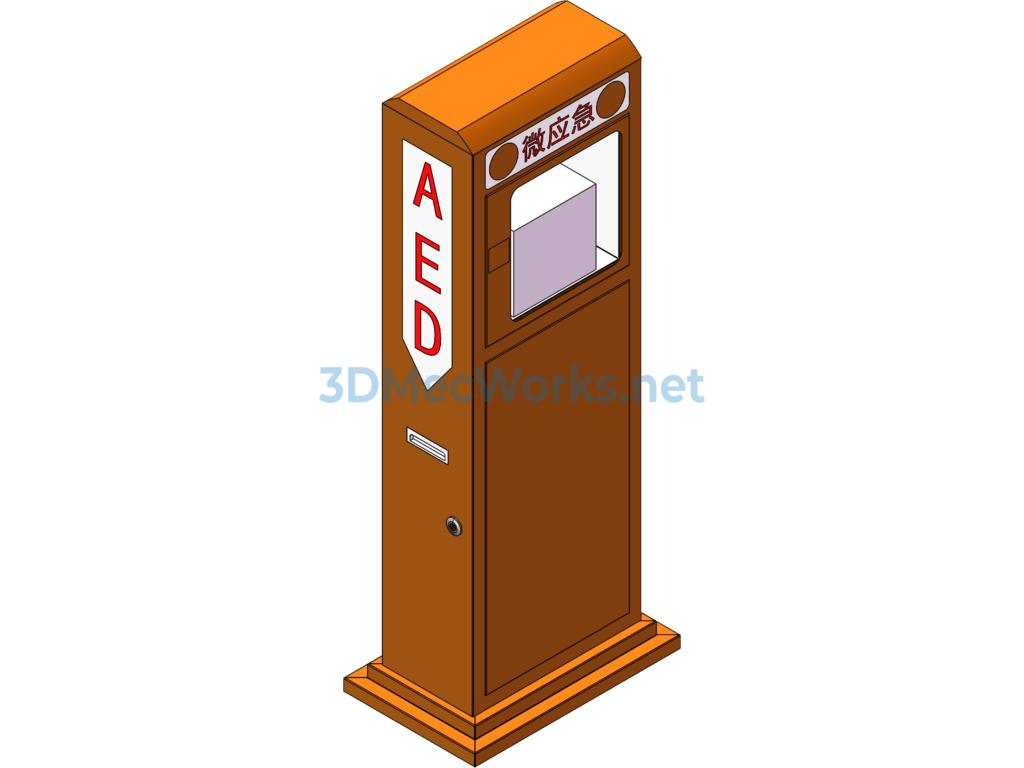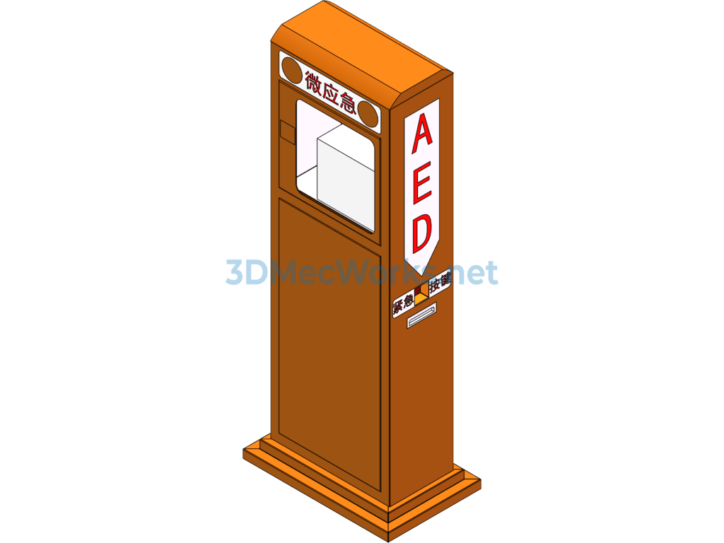 Small-Scale Three-Dimensional Emergency Rescue Station, Sheet Metal Drawing. The small emergency station is primarily equipped with an AED defibrillator and a first-aid kit, and is deployed in densely populated areas. In emergencies, people can quickly and conveniently scan with a mobile phone to access and use it, ensuring safety and reliability. An automated external defibrillator (AED), also known as an automated external shock device, automatic shock device, automatic defibrillator, cardiac defibrillator, or foolproof electroshock device, is a portable medical apparatus. It can diagnose specific arrhythmias and deliver a defibrillation shock. It is a medical device that can be used by non-professional personnel to rescue patients with sudden cardiac arrest. In the event of cardiac arrest, using an automated external defibrillator (AED) to perform defibrillation and cardiopulmonary resuscitation (CPR) on the patient within the “golden 4 minutes” of optimal rescue time is the most effective way to prevent sudden death.