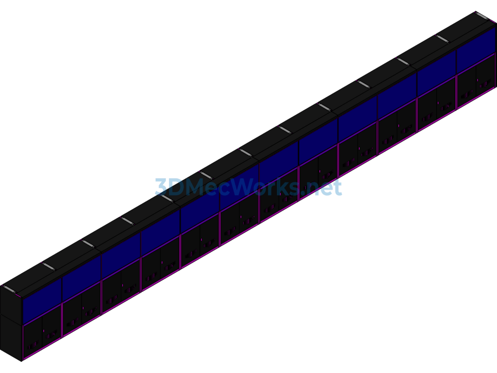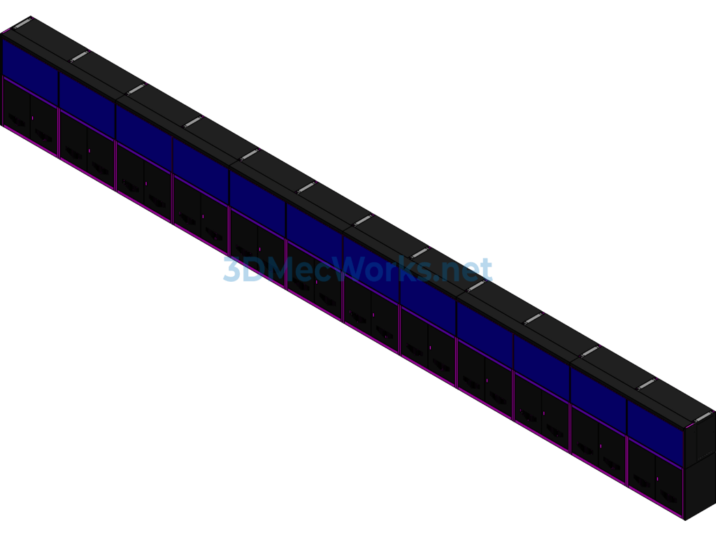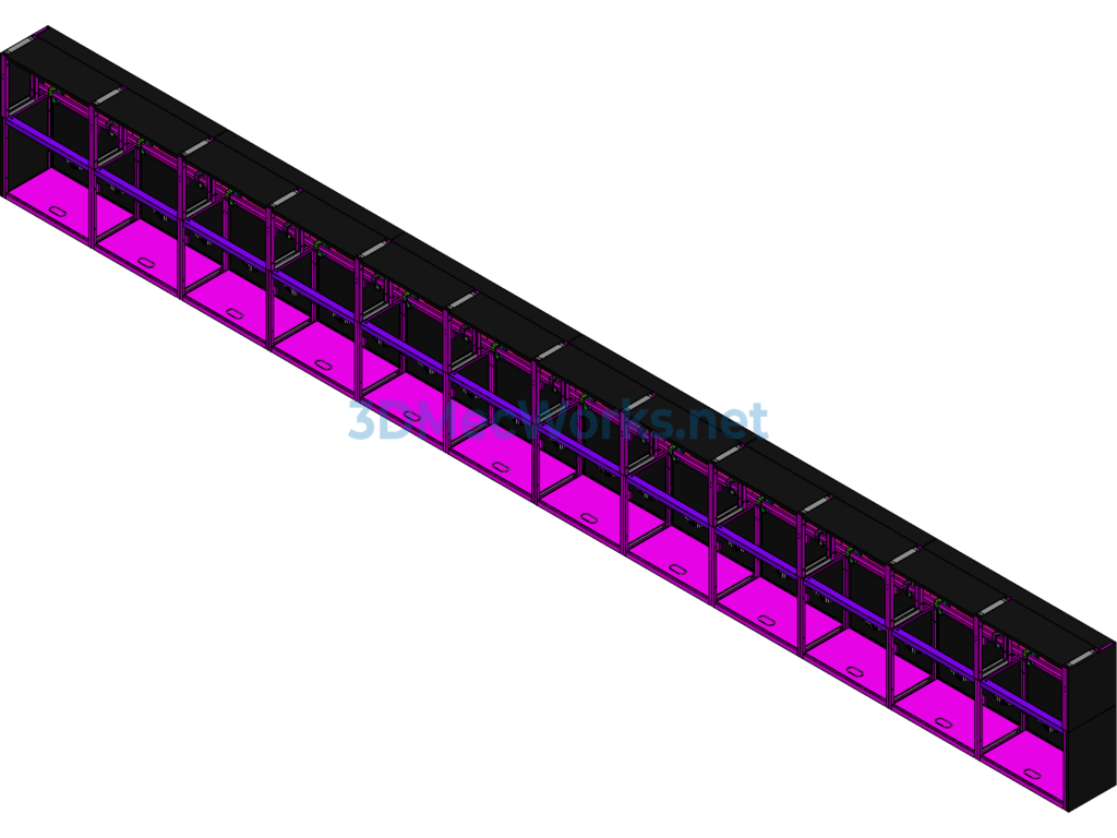 0507A Monitor Stand, a sheet metal TV monitoring wall modeled using Solidworks 2018. Pure sheet metal structure, parts can be unfolded, and sheet metal parameters can be modified. The front door lock is an AB403 type, which can be purchased on Taobao. It is recommended to use M10*150 expansion bolts for fixing at the back. There are images of the lock available for reference. Files are available in STEP and IGS formats.