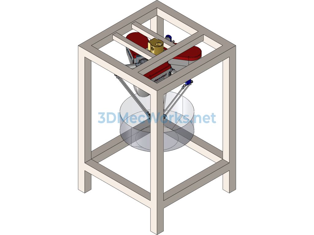 This robotic arm employs three small servos combined with linkage control, used for loading and unloading products.