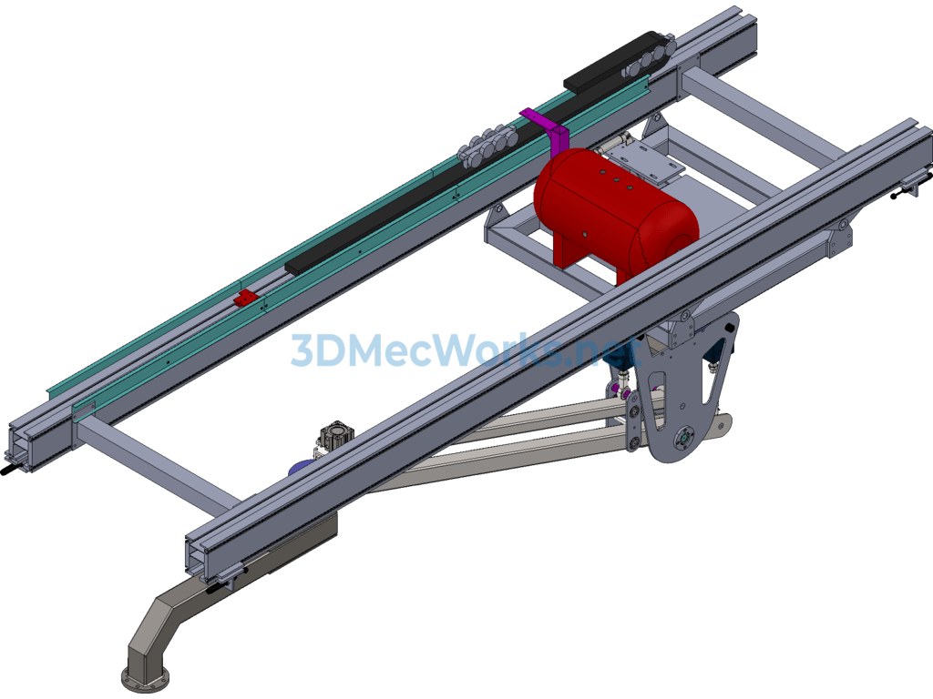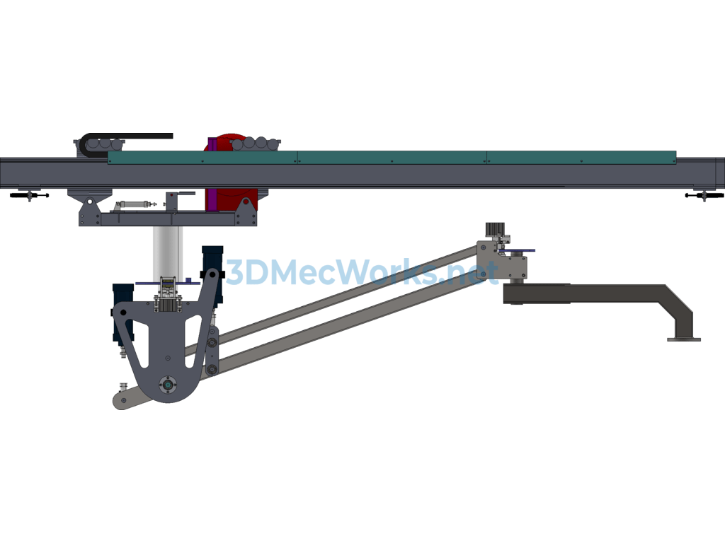 This set of drawings is for a type of mechanical arm, designed to be suspended from the ceiling, saving floor space and facilitating production operations. It is a semi-automated mechanical arm with detailed design drawings, including pneumatic and cushioning components. This is a complete set of design drawings that can be used as material for project design or as a reference for production design.