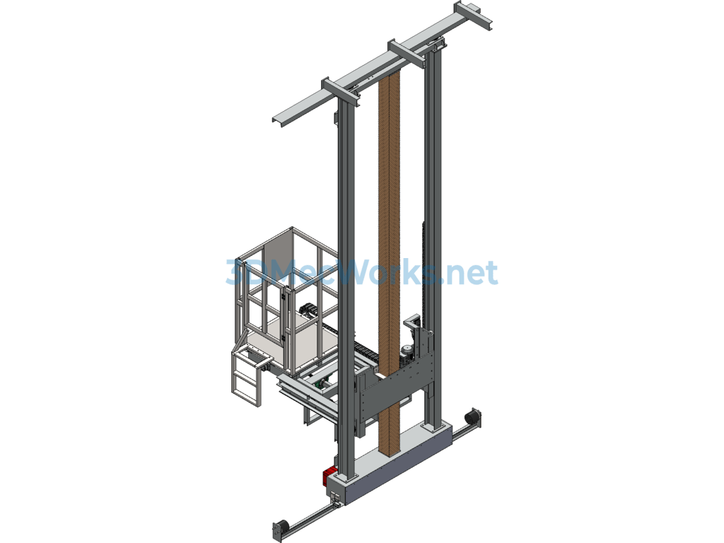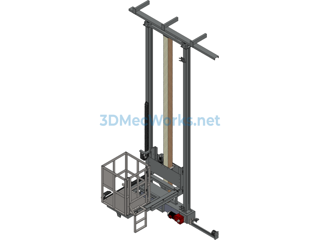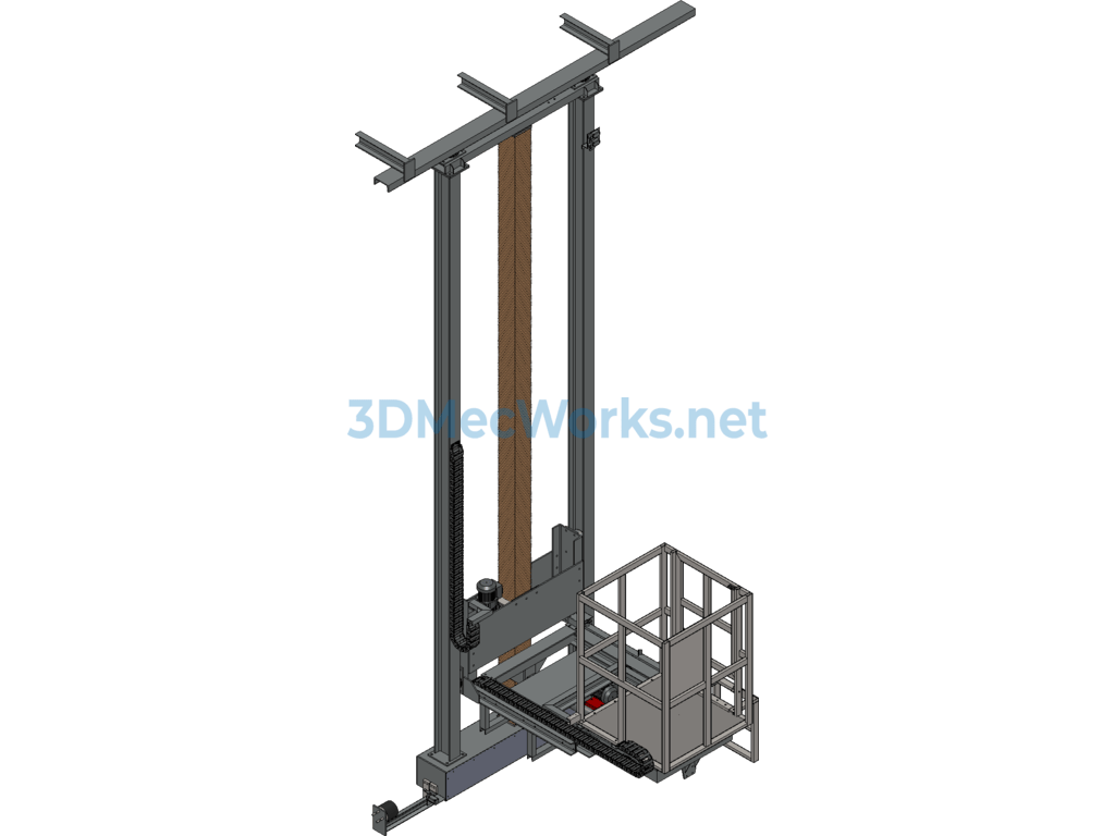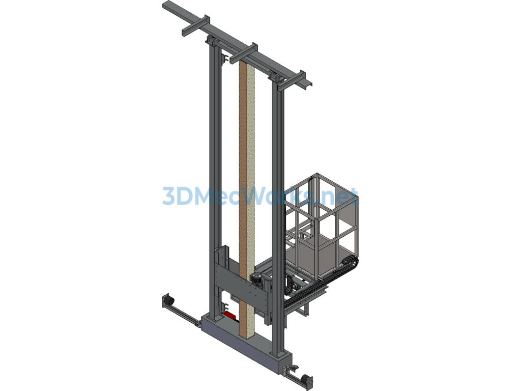 Three-dimensional lift trolley, original design for painting line with 3D lift, telescopic, and lateral moving work platform, includes all parts. This lift uses a screw lift device which is safer than chain drive and has a fall prevention function. The lifting platform has operated without failure in over 50 units, tested through practical applications, and all parts are editable. Welcome to download and learn!
