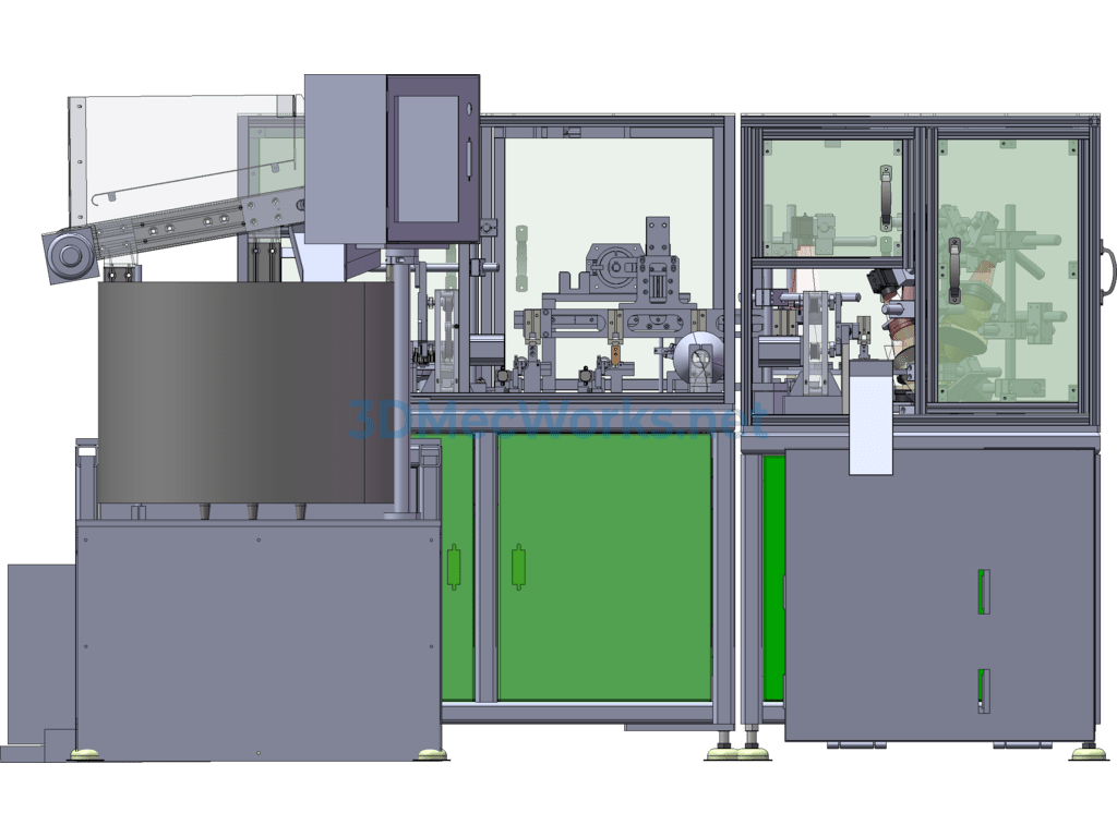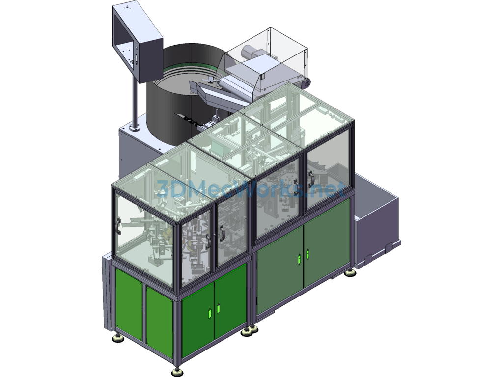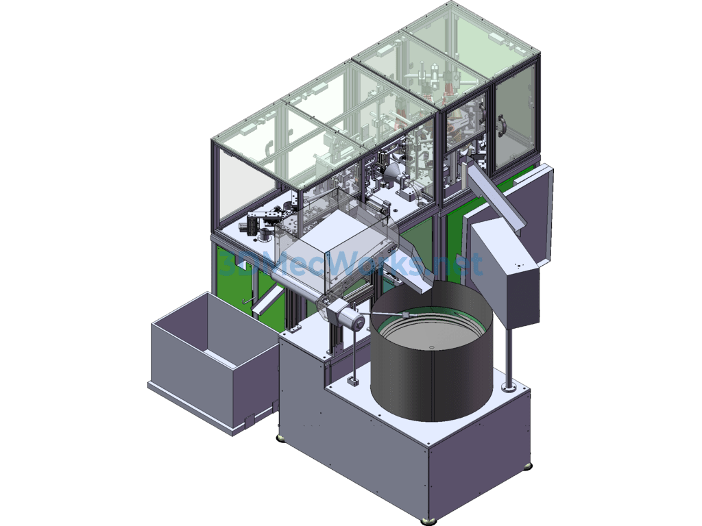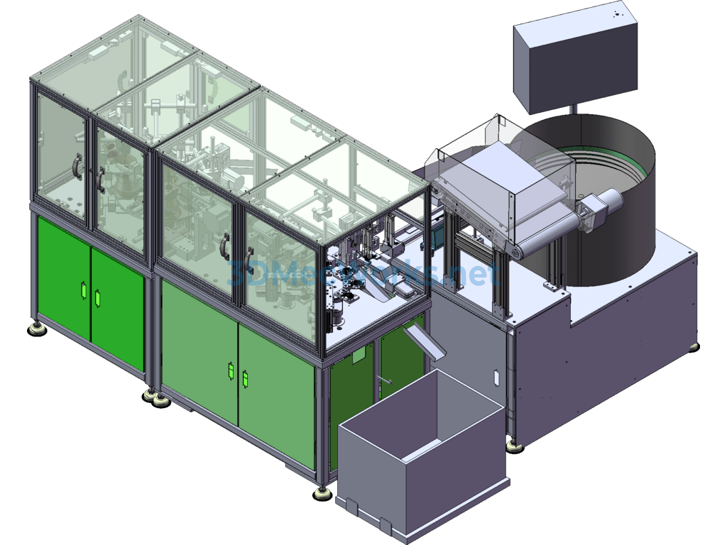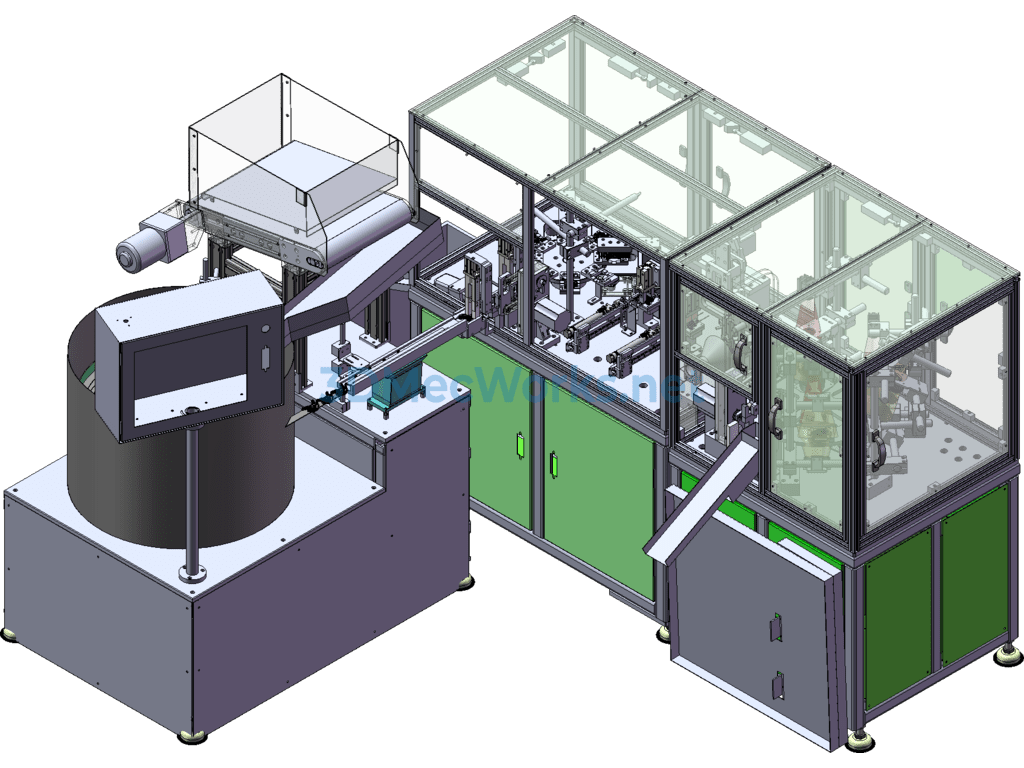 This equipment is a through-hole dust removal and dimension inspection machine, dust removal, through-hole inspection, metal detection, industrial camera, cam divider, automatically sorting OK/NG, automatic feeding with a conveyor line, vibration plate feeding. Worth referencing and learning, has features, can be modified.
