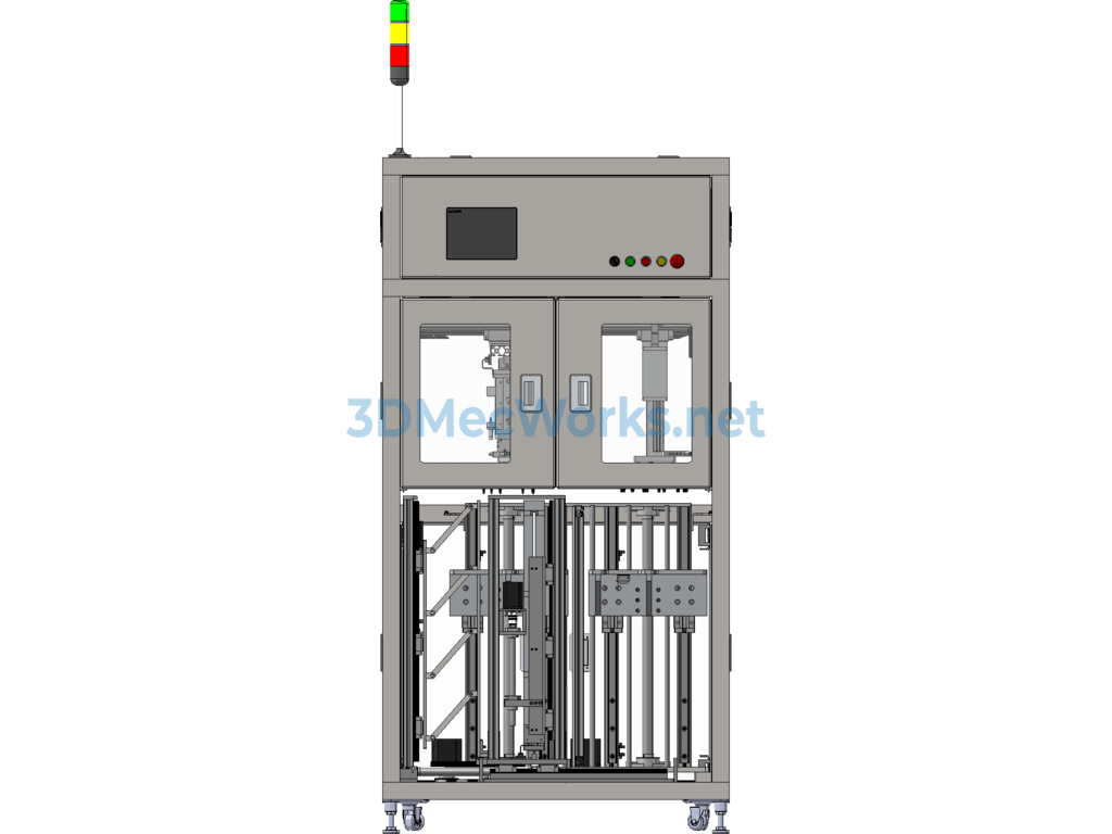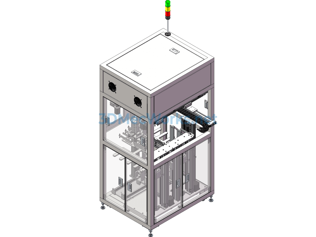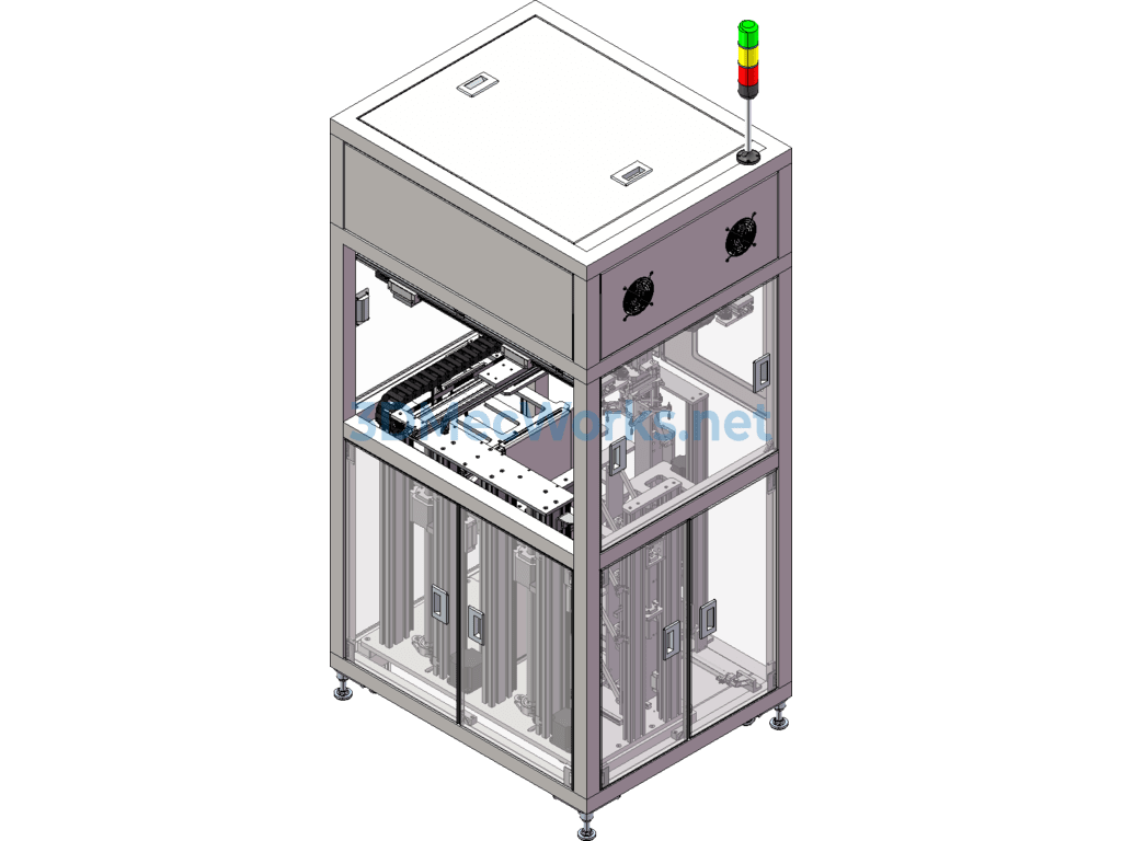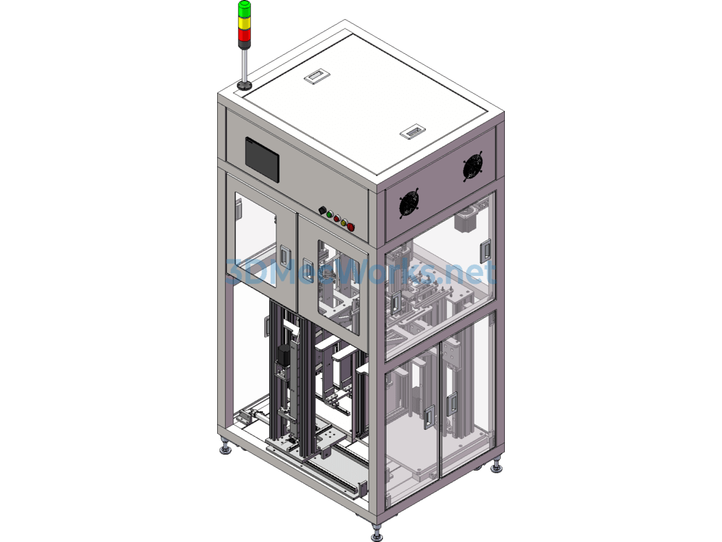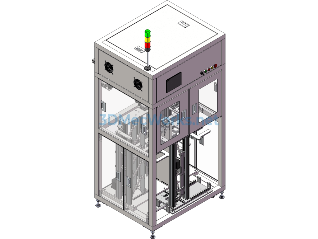 The equipment is an automatic feeding device for trays, paired with assembly equipment to pick up the products in the trays and place them in a designated location (secondary positioning). The left and right lifting mechanisms handle full and empty trays! It can be used for modular assembly line operations! The equipment is designed with Solidworks2012 and includes original files & STP format, which can be edited!