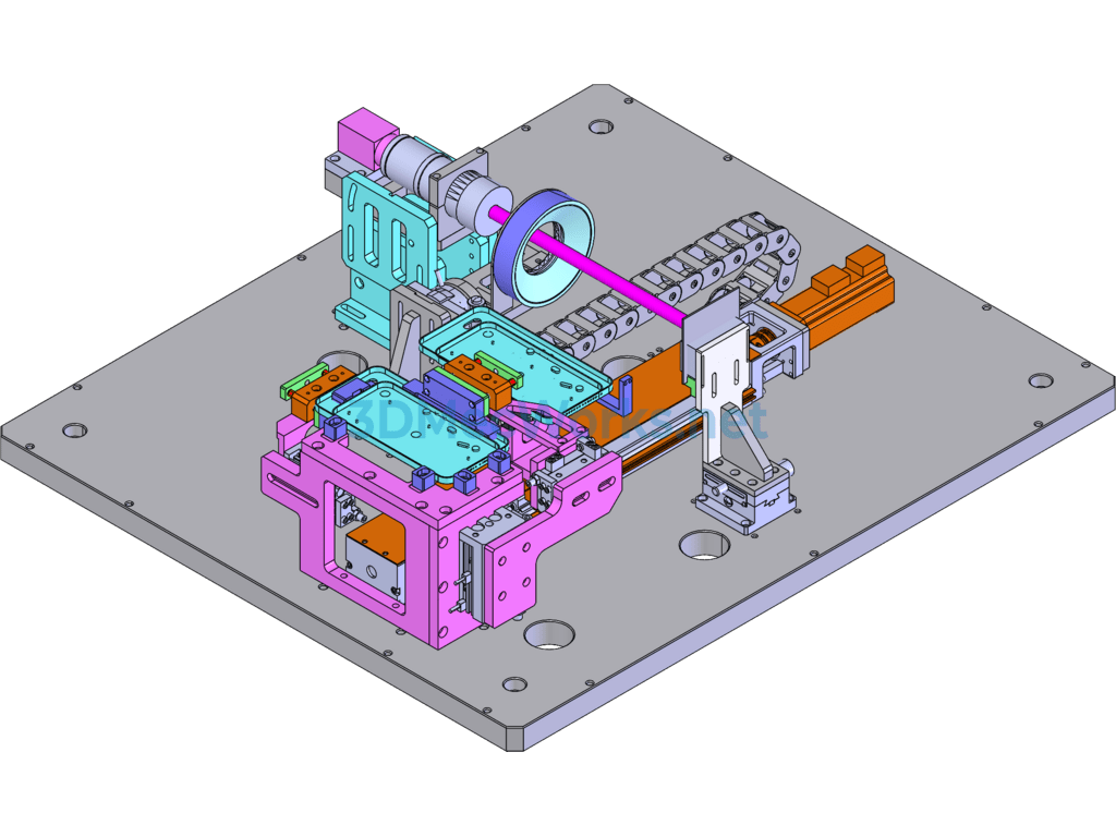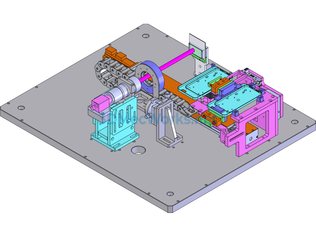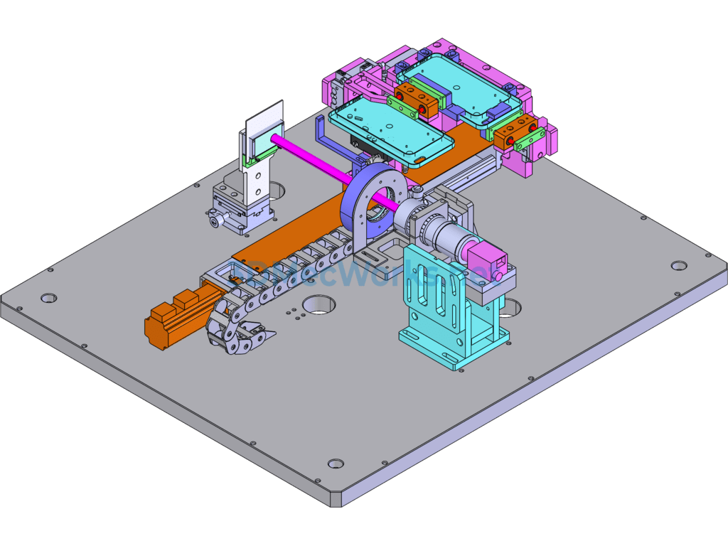 This equipment is used for the appearance and dimension inspection of the camera boss on mobile phone cases. It involves manual loading, automatic feeding, and automatic CCD detection. After inspection, the material is manually retrieved. The drawing file is in SW2016 format, and the equipment has an aesthetically pleasing appearance. It holds high reference value and is available for download.