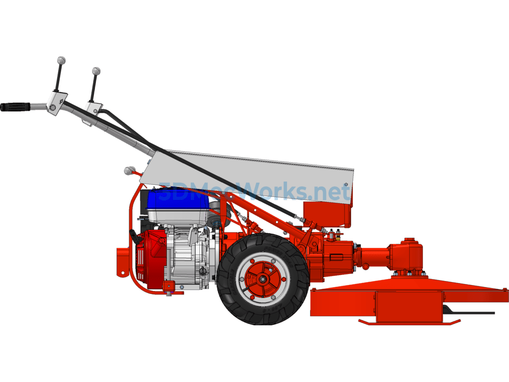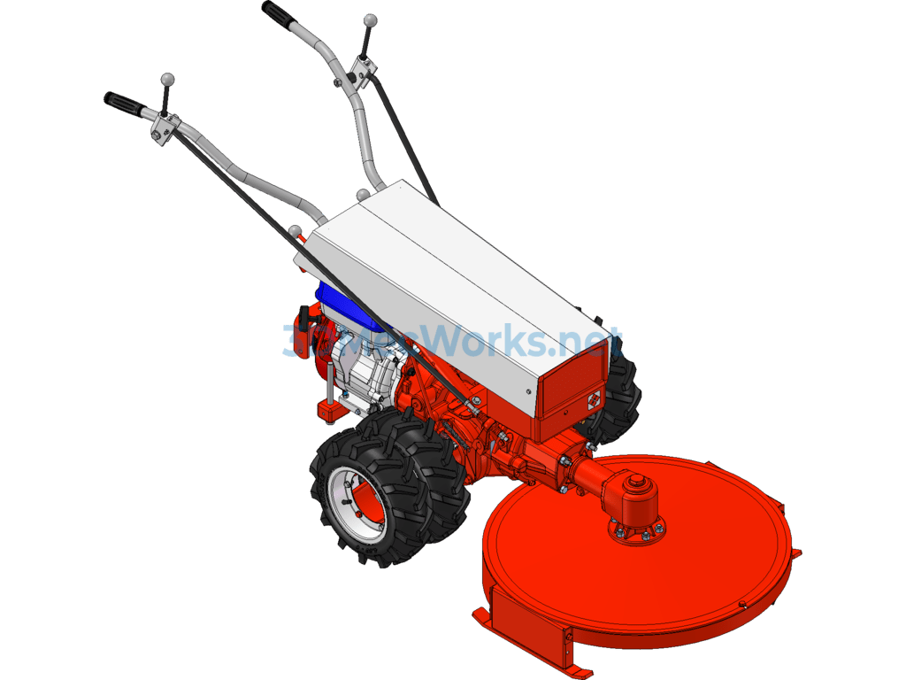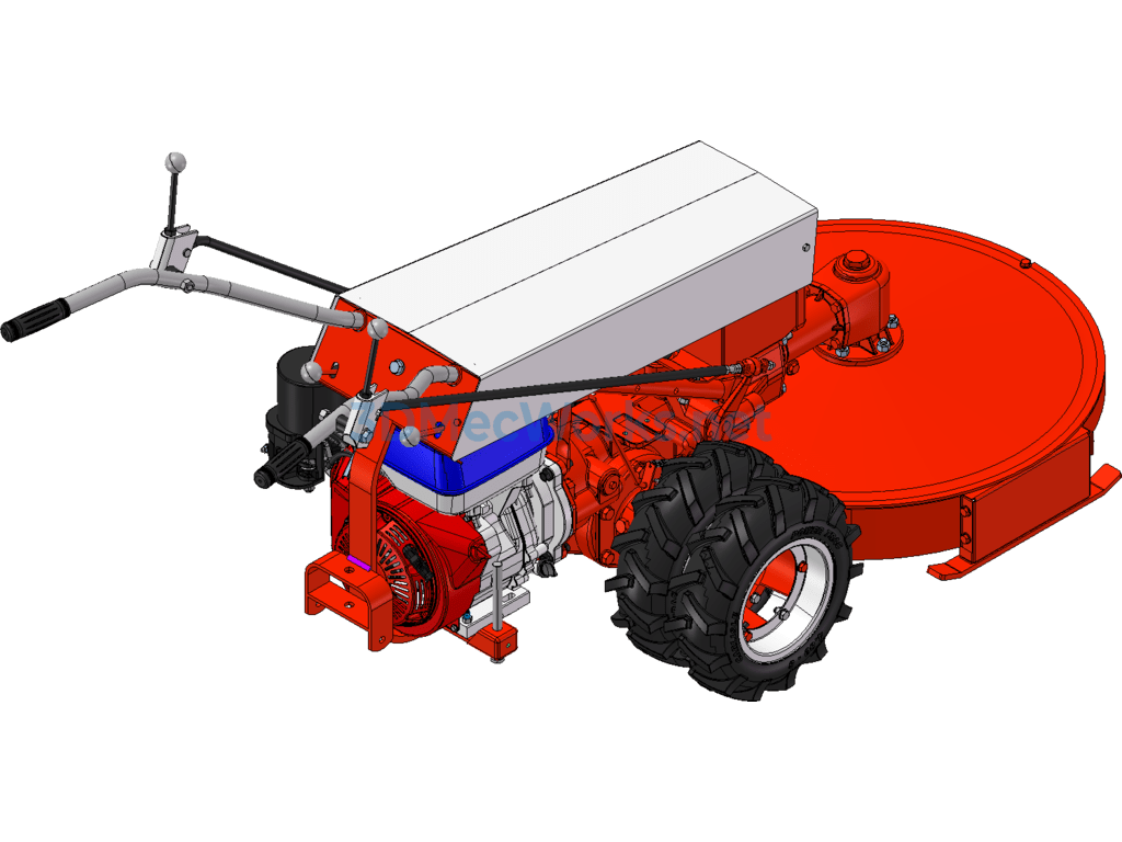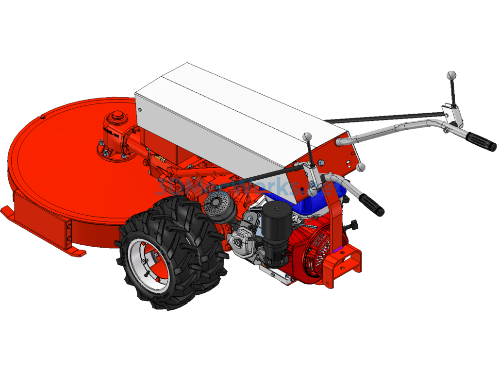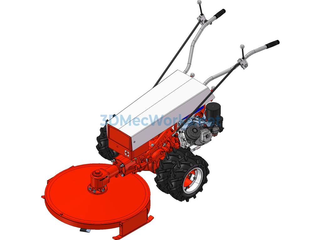 The walk-behind tractor mower (lawn mower) is also known as a weeding machine, grass cutter, lawn trimmer, etc. This 3D model is designed using SW2015 and offers sldasm and sldprt source files for reference. Feel free to download it.